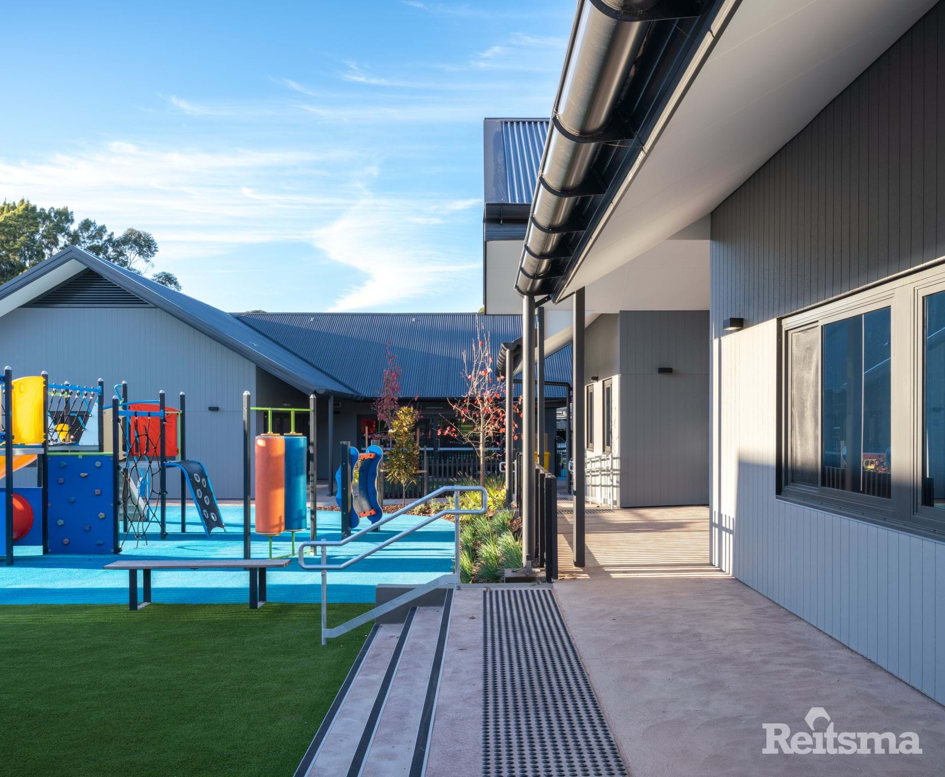 | JOB DESCRIPTION | A new set of classrooms and playground to an existing school in the Hills. Landscape elements included: turfing, garden beds, state of the art play equipment and soft fall rubber installation. |