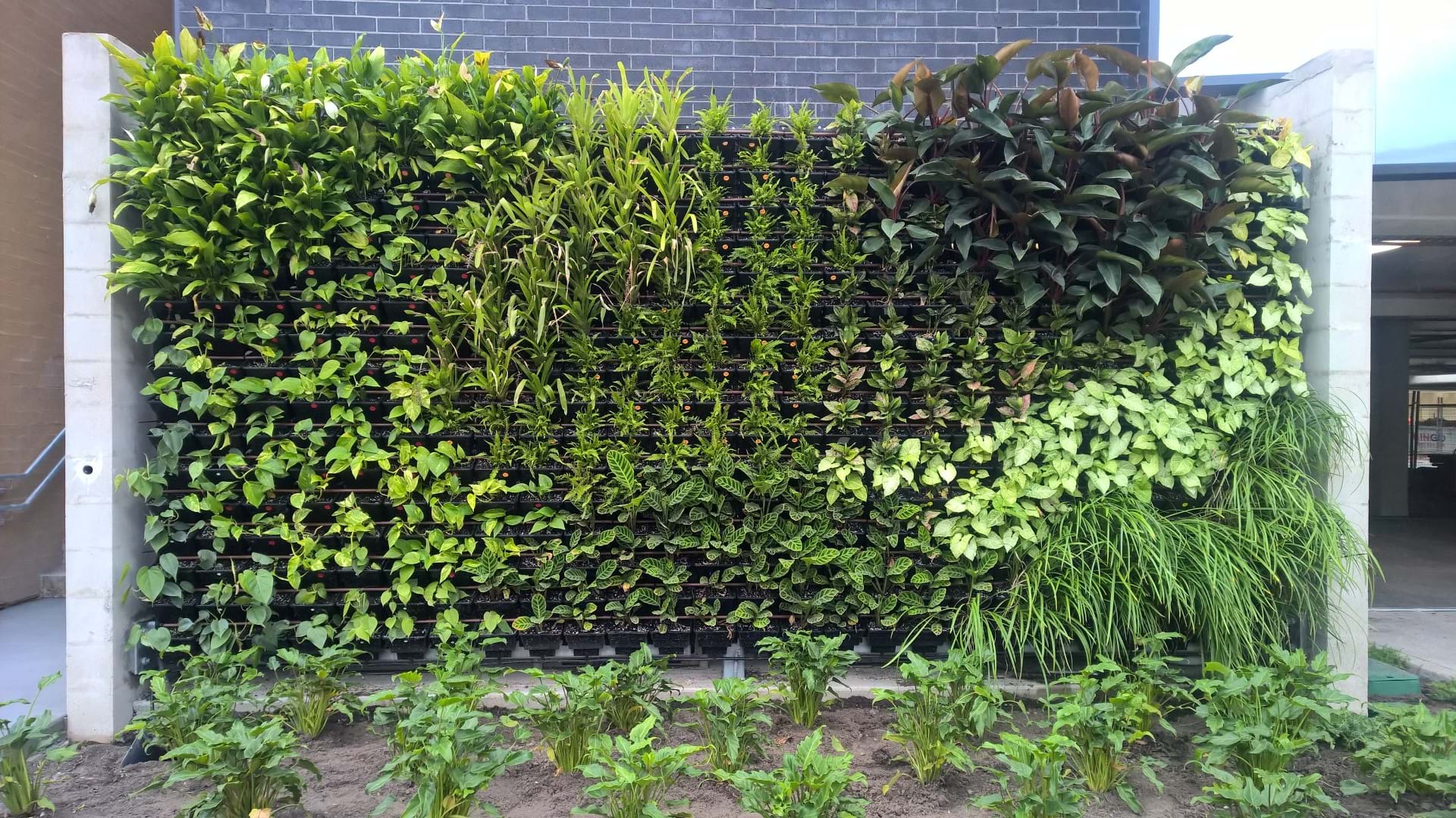 | JOB DESCRIPTION | This project features a 70 square metre green wall on the front elevation to the school. Advanced palms feature in planter boxes at the rear of the building. An automatic irrigation system is in use to keep the green wall at optimum moisture levels. | ||
