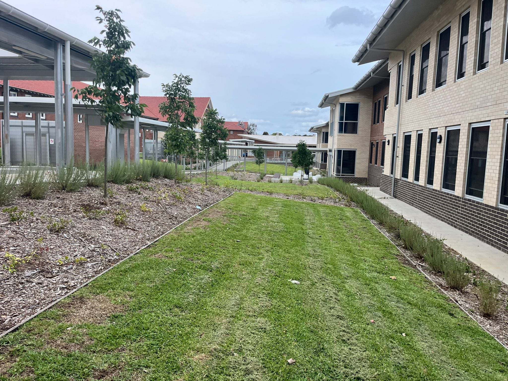 | JOB DESCRIPTION | Soft landscaping of the upgraded student boarding and agricultural education facilities, consisting of mass planting, large turf areas, hydroseeding, koala tree planting, 600m3 sawdust bedding to cattle and sheep sheds, planter beds, vegetable planters and bespoke bench seats. |