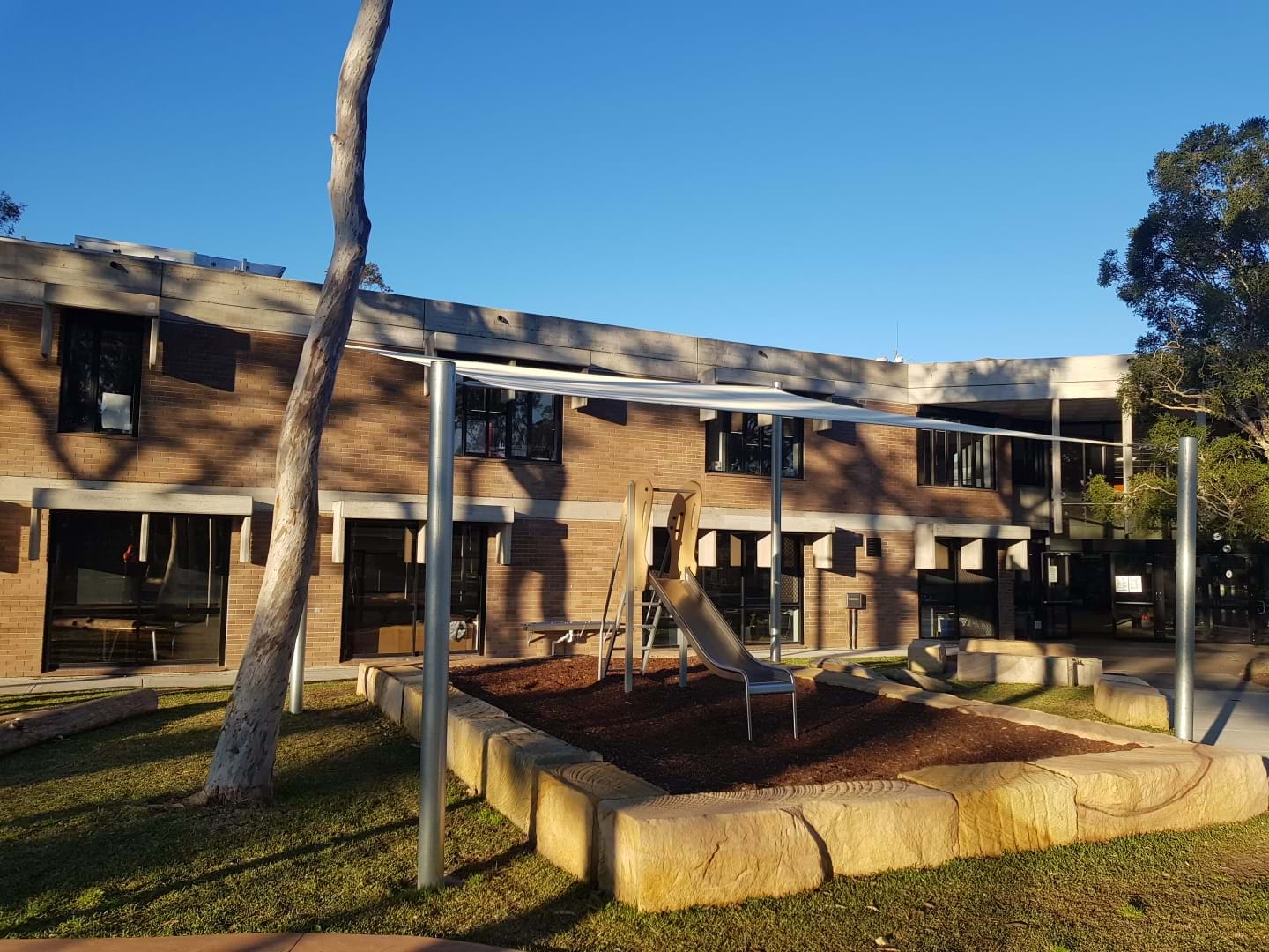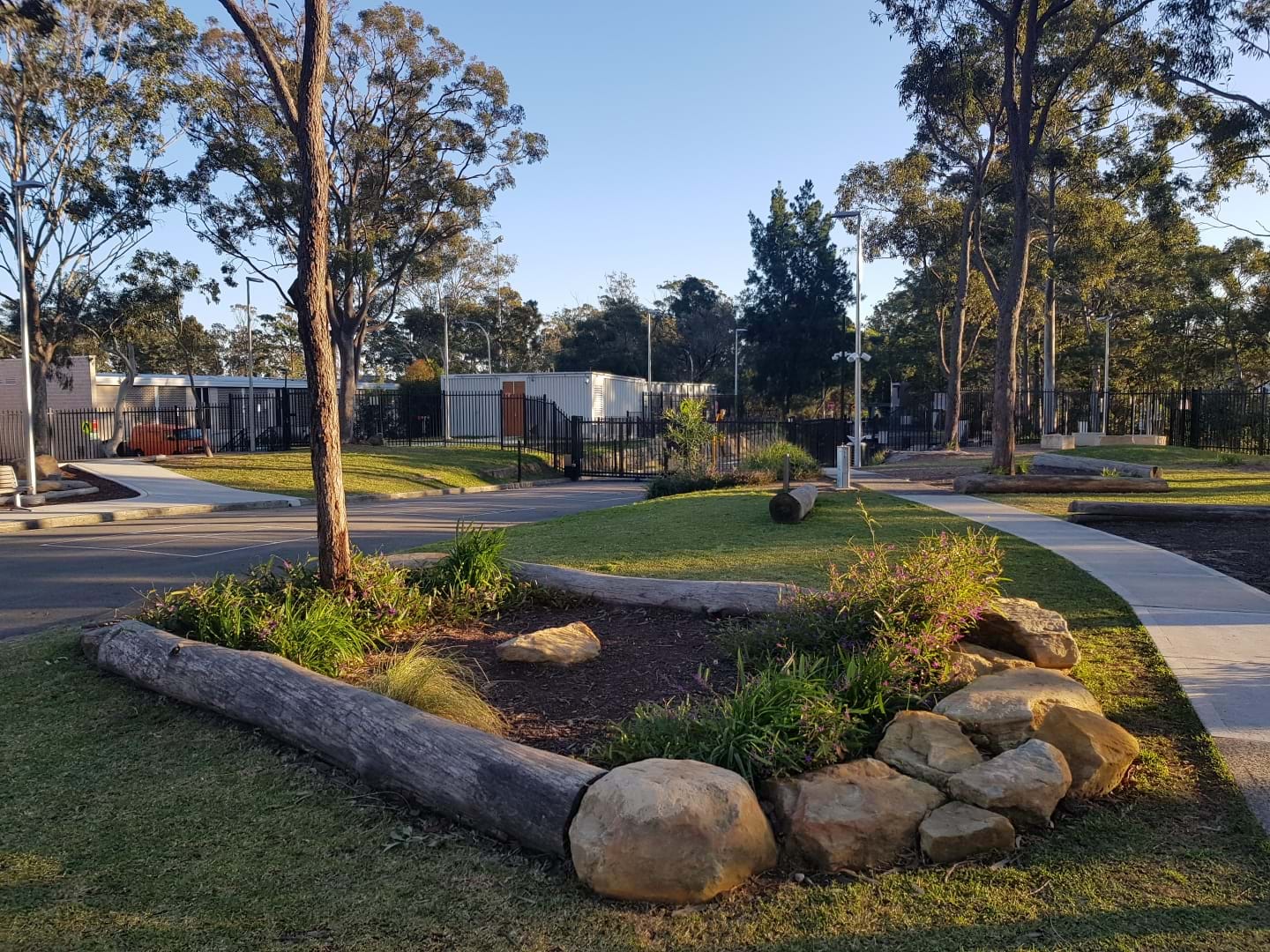 | JOB DESCRIPTION | A modern outdoor learning space was created for this repurposed university campus. Adventure playgrounds and open lawn areas were created under the existing tree canopy for the Kindergarten to Year 6 students to enjoy. Challenges on this job included: a tight building program, shallow soils over sandstone rock base and compliance with both a VMP and a Bushfire Protection Plan. |
