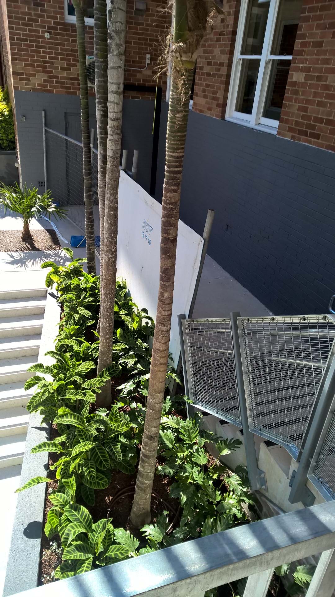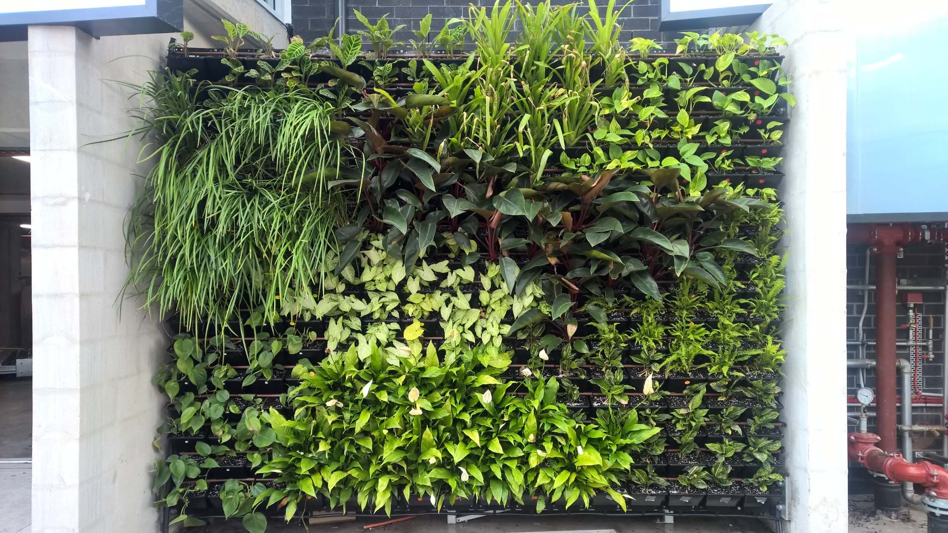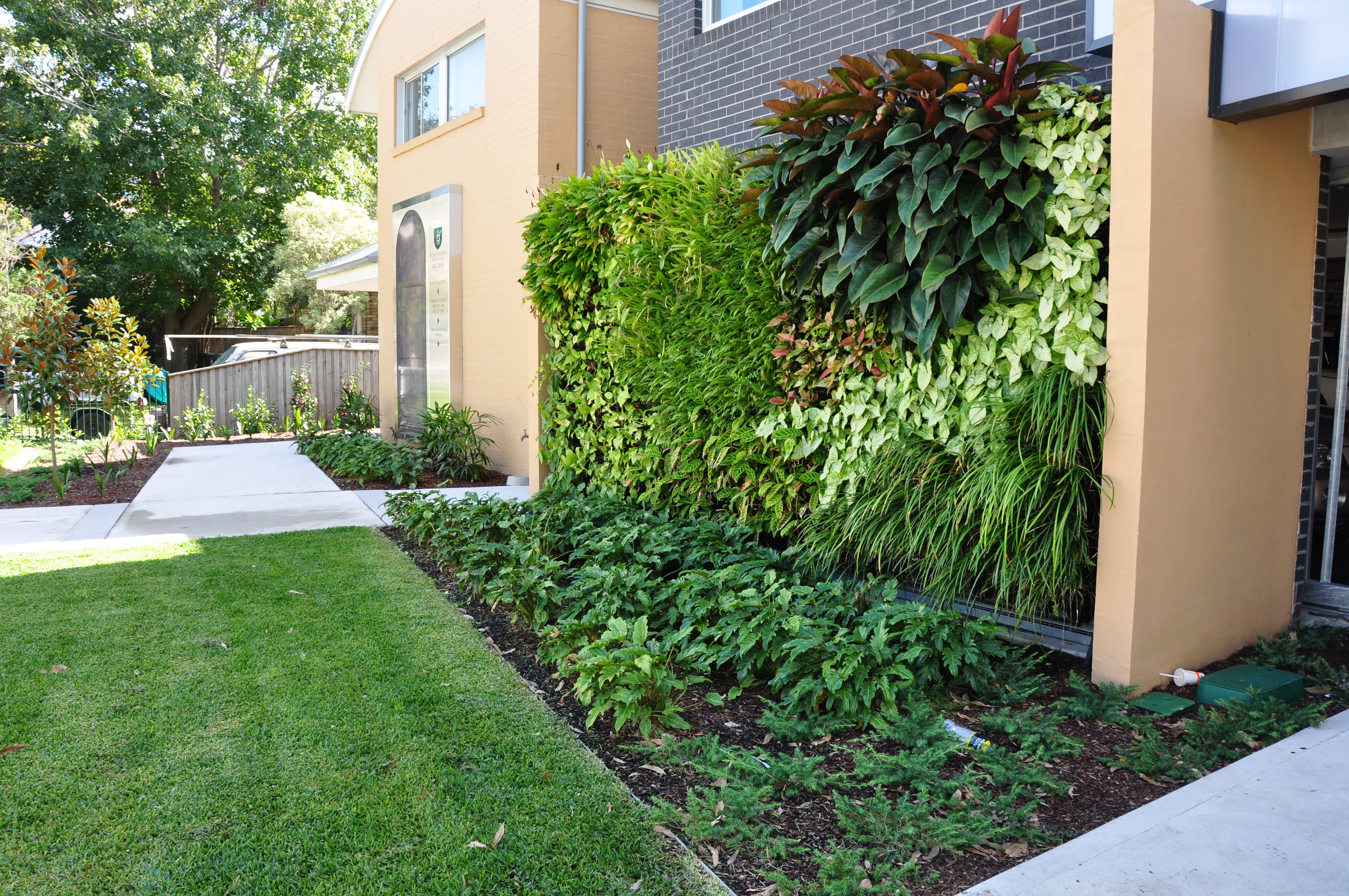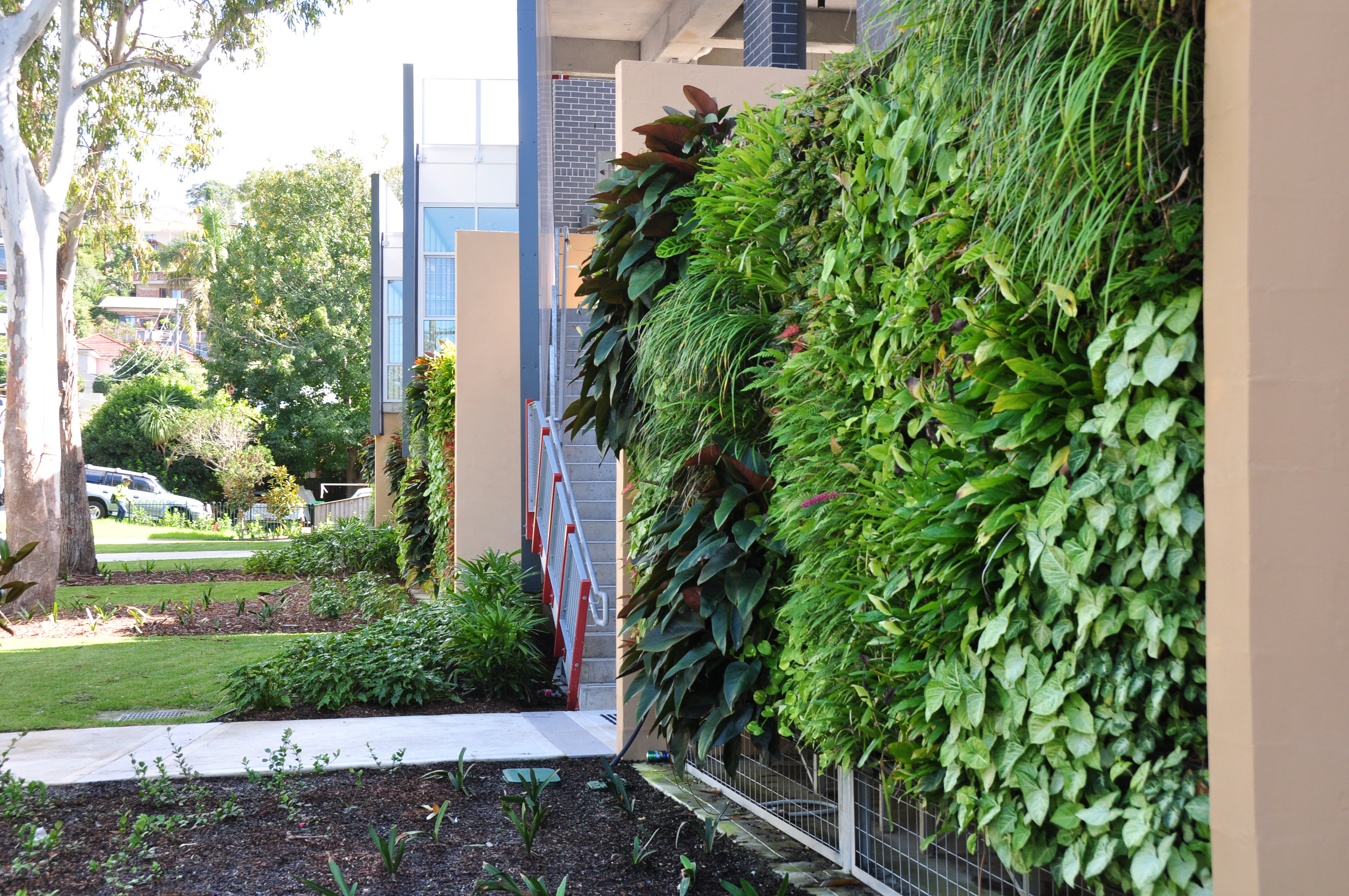 | JOB DESCRIPTION | This project features a 70 square metre green wall on the front elevation to the school. Advanced palms feature in planter boxes at the rear of the building. An automatic irrigation system is in use to keep the green wall at optimum moisture levels. | ||